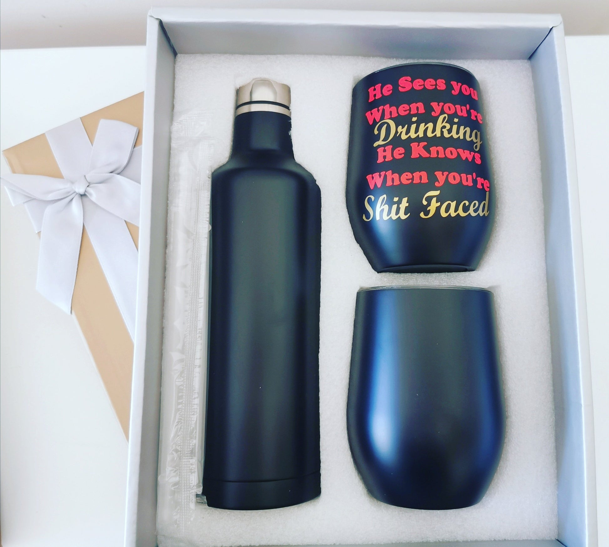 He Sees you when... Tumblers and bottle set